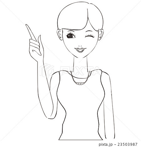 美人 女性 線画 ショートカット女性 線画紹介 案内のイラスト素材